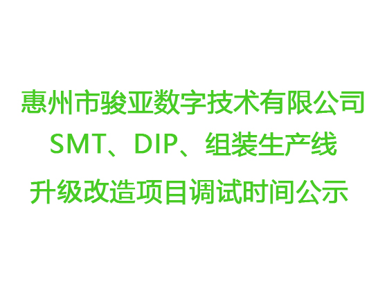 惠州市駿亞數(shù)字技術有限公司SMT、DIP、組裝生產(chǎn)線升級改造項目調試時間公示